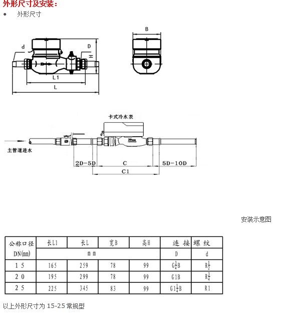 | 口徑(DN)mm | 純水表 | 15 | 20 | 25 |