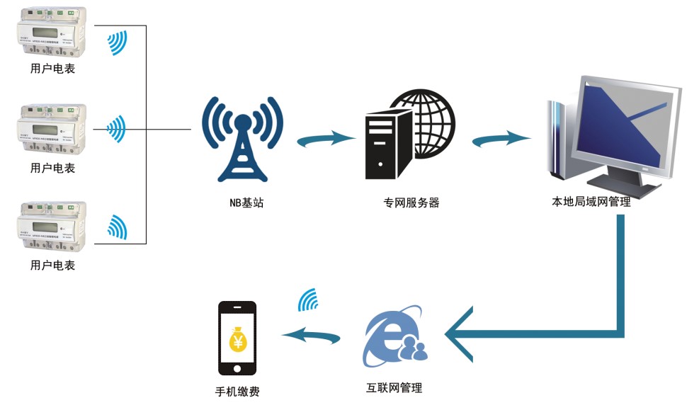 三相物聯(lián)網(wǎng)智能電表內(nèi)置無(wú)線(xiàn)NB-IoT物聯(lián)網(wǎng)模塊和數(shù)據(jù)卡,無(wú)需任何調(diào)試上電自動(dòng)連接微信公眾平臺(tái),實(shí)現(xiàn)遠(yuǎn)程抄表與電費(fèi)自動(dòng)按月結(jié)算。費(fèi)用清單由業(yè)主登錄平臺(tái)審核后,租戶(hù)可通過(guò)微信查詢(xún)繳費(fèi),費(fèi)用實(shí)時(shí)到賬。